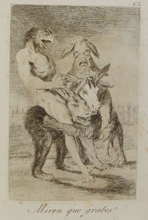 One can add to this the Lazarillo painting and the Caprichos There Is Plenty to Suck, Ya es hora, Estan calientes and the force-fed Chinchillas. And from the Desastres: the vomiting man in Para eso habeis nacido and the vomiting monster of Fiero Monstruo!